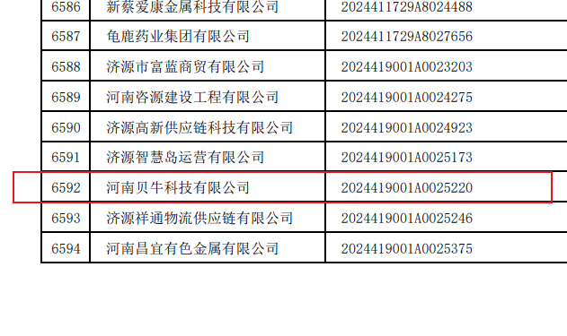 河南贝牛科技有限公司入选河南省2024年第六批拟入库科技型中小企业名单